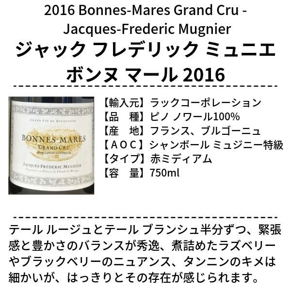 ・ジャック フレデリック ミュニエ ボンヌ マール 2016×1本(フランス ブルゴーニュ、赤ミディアム、750ml)