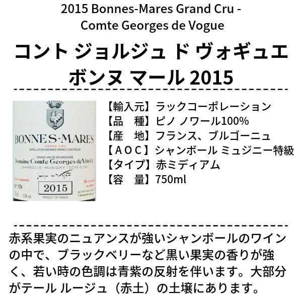 ・コント ジュルジュ ド ヴォギュエ ボンヌ マール 2015×1本(フランス ブルゴーニュ、赤ミディアム、750ml)