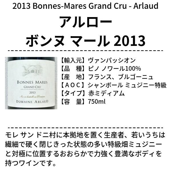 ・アルロー ボンヌ マール 2013×1本(フランス ブルゴーニュ、赤ミディアム、750ml)